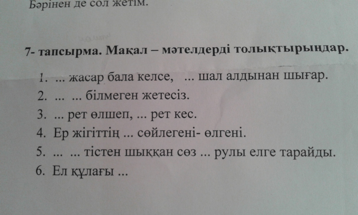 1.Алыстан алты жасар бала келсе,алпыстағы шал алдынан шығар.