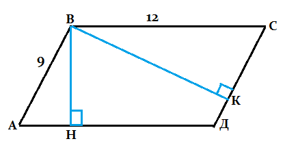Площадь параллелограмма 36 см². Найти его высоты, если стороны равны 12 см и 9 смПлощадь параллелограмма равна произведению высоты на сторону, к которой проведена.