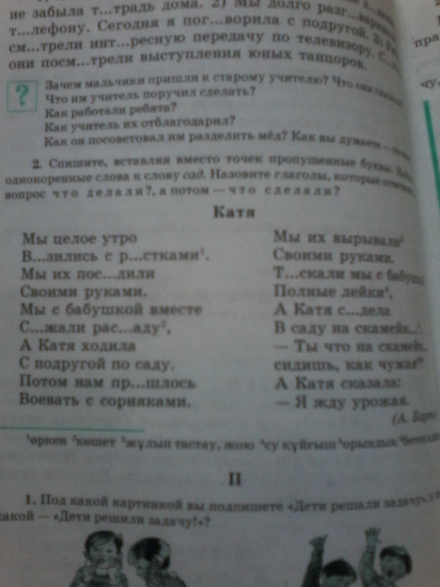 Глаголы: возились, посадили, сажали, ходила, пришлось воевать, вырывали, таскали, сидела, сидишь, сказала, жду