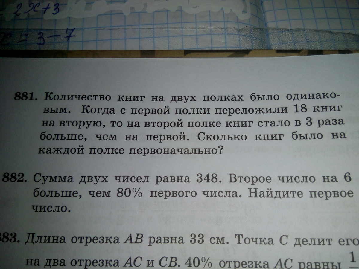 Причём на большей – ровно в три раза больше, чем на меньшей. Т.е., если мысленно увеличить количество книг на меньшей полке, то оно должно было стать равным количеству книг на большей полке. Это можно записать, как уравнение: