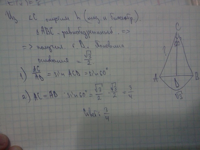 В треугольнике АВС АС = ВС, угол С равен 120 градусов, АС = 25 умноженое на корень из 3. Найти АВ.
