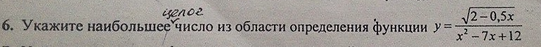 D(f) = 2-0,5x>=0 ; x^2-7x+12 \neq 0