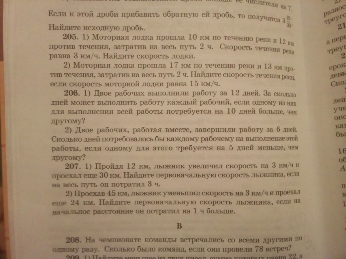 205. 2) Проще делать с таблицей. Пусть х - скорость течения реки. Тогда: