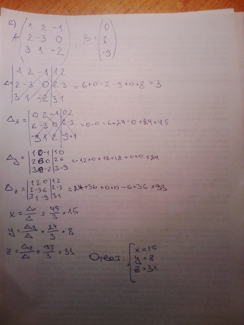 Решите систему линейных алгебраических уравнений: а) по формулам Крамера; б) методом