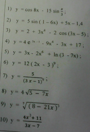 ![y`=-9/ \sqrt[7]{(8-21x)^4} y`=-9/ \sqrt[7]{(8-21x)^4}](https://tex.z-dn.net/?f=y%60%3D-9%2F+%5Csqrt%5B7%5D%7B%288-21x%29%5E4%7D+)