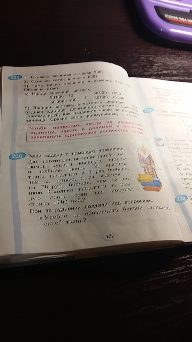 для изготовления новогодних костюмов купили красную синюю и зеленую ткань для красной ткани заплатили в 5 раз больше чем за 7 раза деленное на 76 больше чем