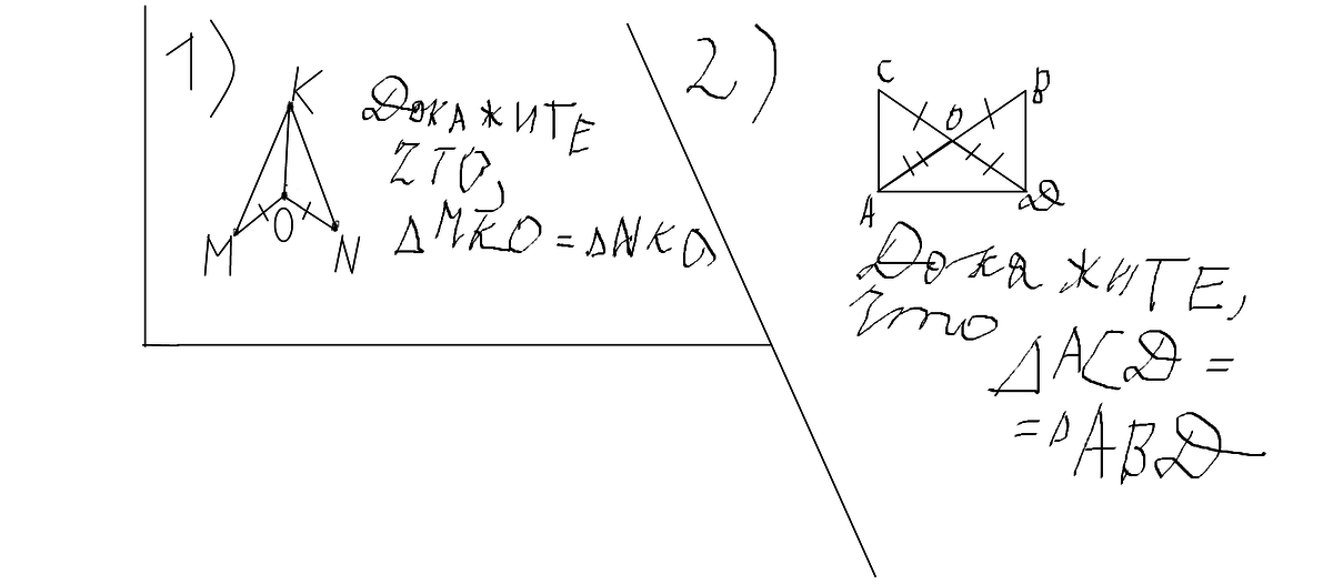1) Рассмотрим треугольник( это будет знак ♥) MKO=♥NKO. У них угол MOK=NOK, KO- общая, MO=NO, следовательно ♥MKO=♥NKO.