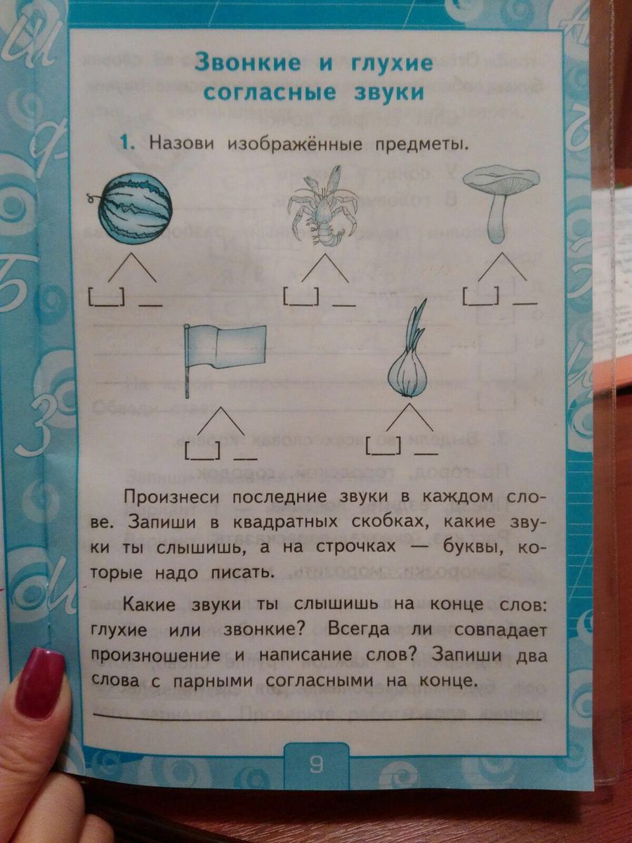арбуз(с) глух. рак(г)звонк. гриб(п) глух. флаг(к) глух.лук(г) звонк