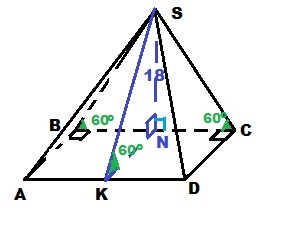 tg 60° = SN/NC ⇒ NC = SN/tg 60° = 18/√3 = 6√3