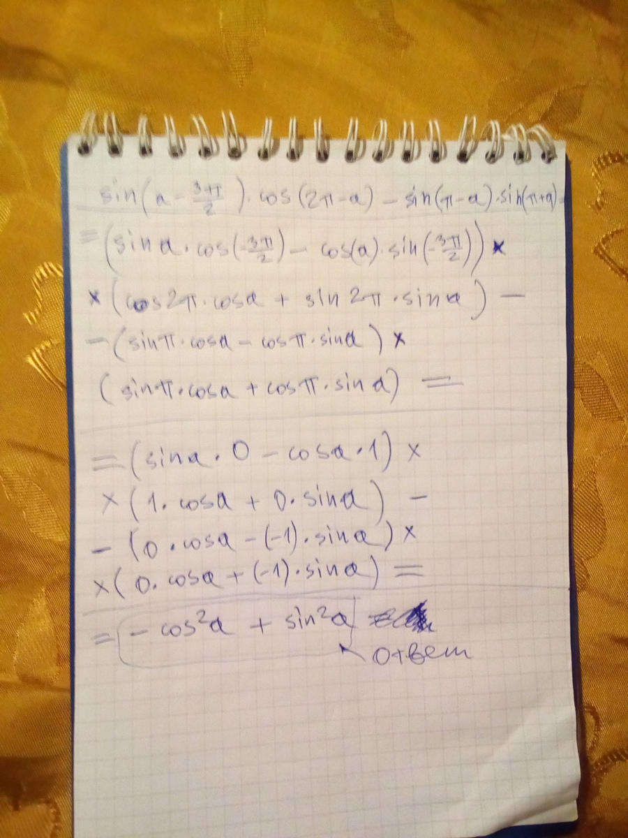 sin(a-3п/2)cos(2п-a)-sin(п-a)sin(п+a) решите плз