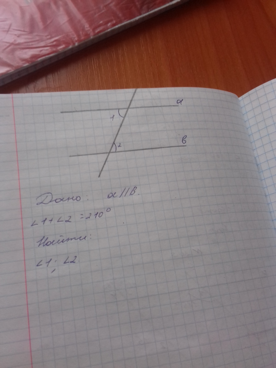 Это накрест лежащие углы и они равны между собой 210:2=105