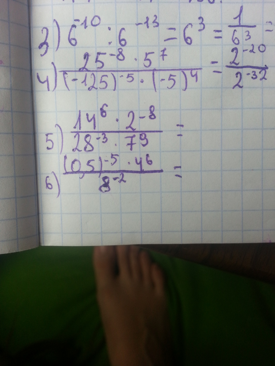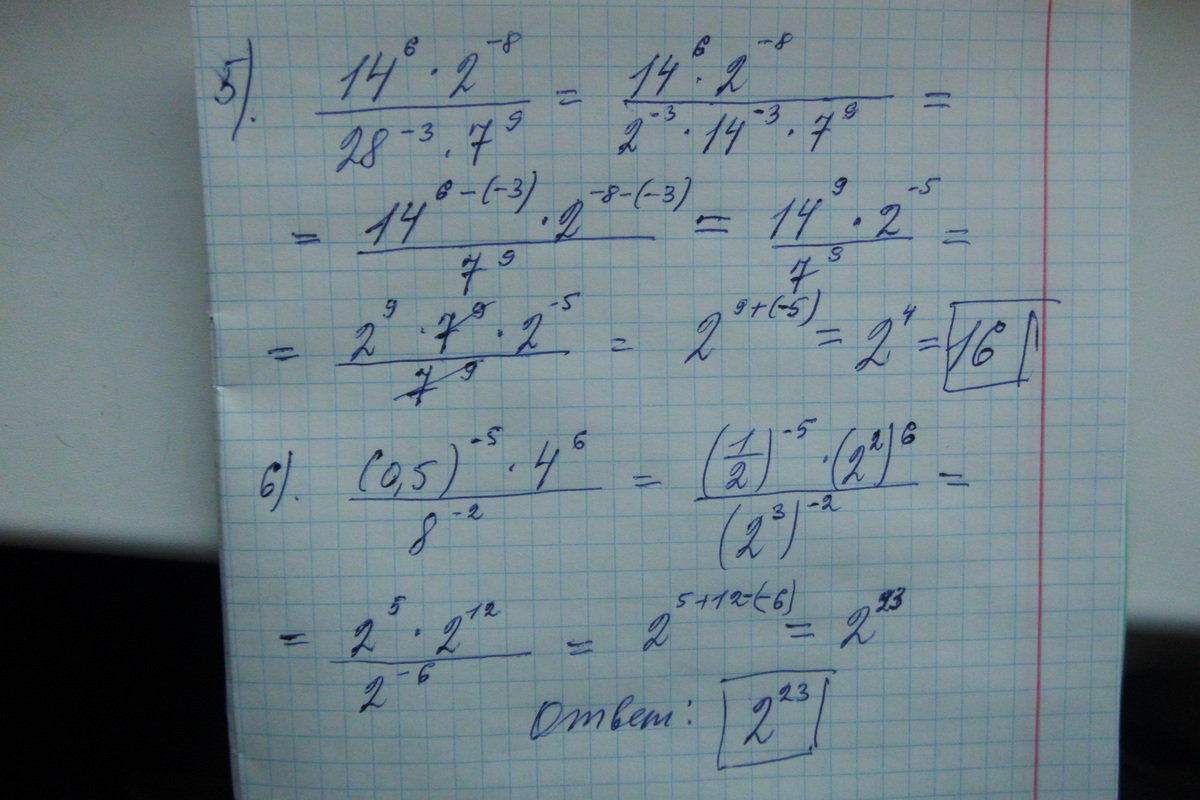 5) ((14)∧6*2∧-8)/((28)∧-3)*(7∧9))=((2*7)∧6*2∧-8)/((2∧2*7)∧-3*(7∧9))=