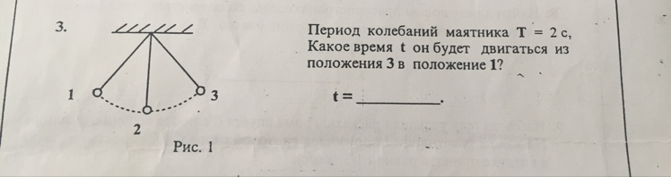 период колебаний маятника Т=2с, какое время t он будет двигаться из положения 3 в положении 1