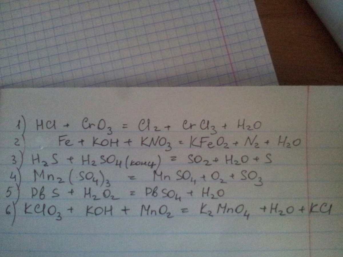 6) KClO3 + 6KOH + 3MnO2 = 3K2MnO4 + 3H2O + KCl: