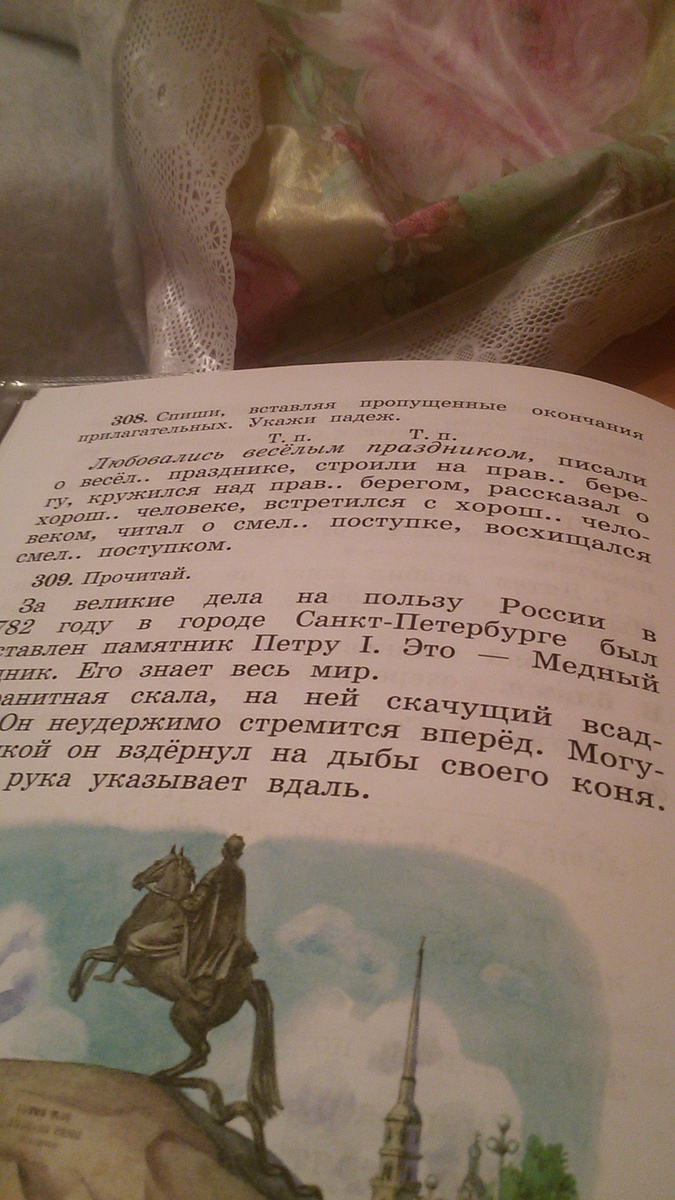 Писали о весёлом(П.п.) празднике(П.п.);строили на правом(П.п.) берегу(П.п.);кружился над правым(Т.п.) берегом(Т.п.);