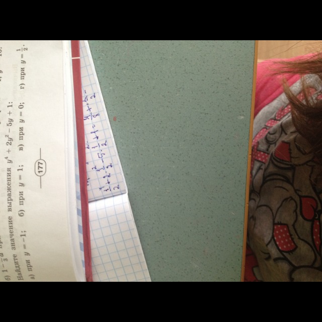 у⁴ + 2у² - 5у + 1 = (0,5)⁴ + 2*(0,5)² - 5*0,5 + 1 = 1/16 + 2/4 - 5/2 +1 = (1 + 8 - 40 + 16)/16 = -15/16.