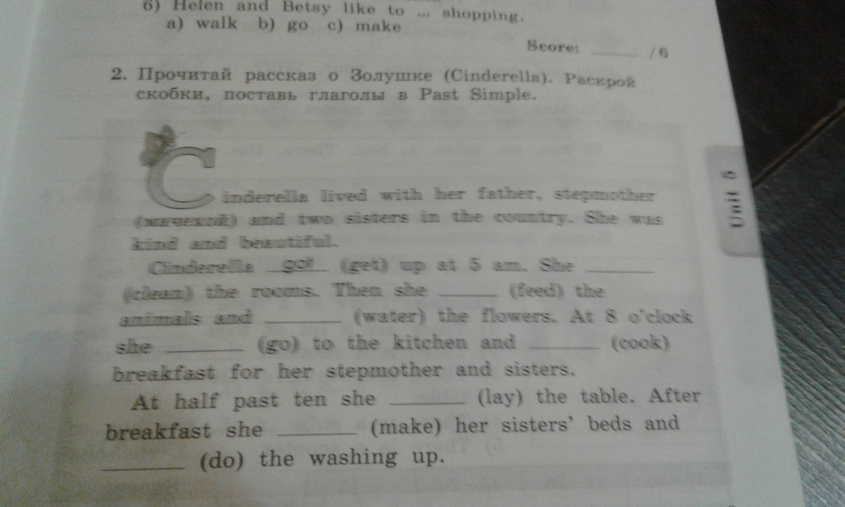 She cleaned the rooms. Then she fed the animals and watered the flowers. At 8 o'clock she went to the kitchen and cooked breakfast for her stepmother and sisters.