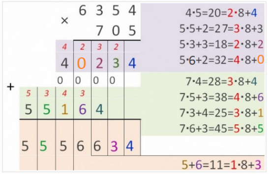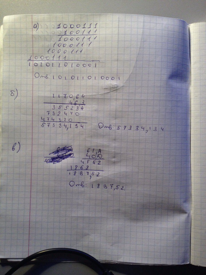 Решение на фотографии. Подробное объяснение по умножению в системах счисления в другой фотографии.