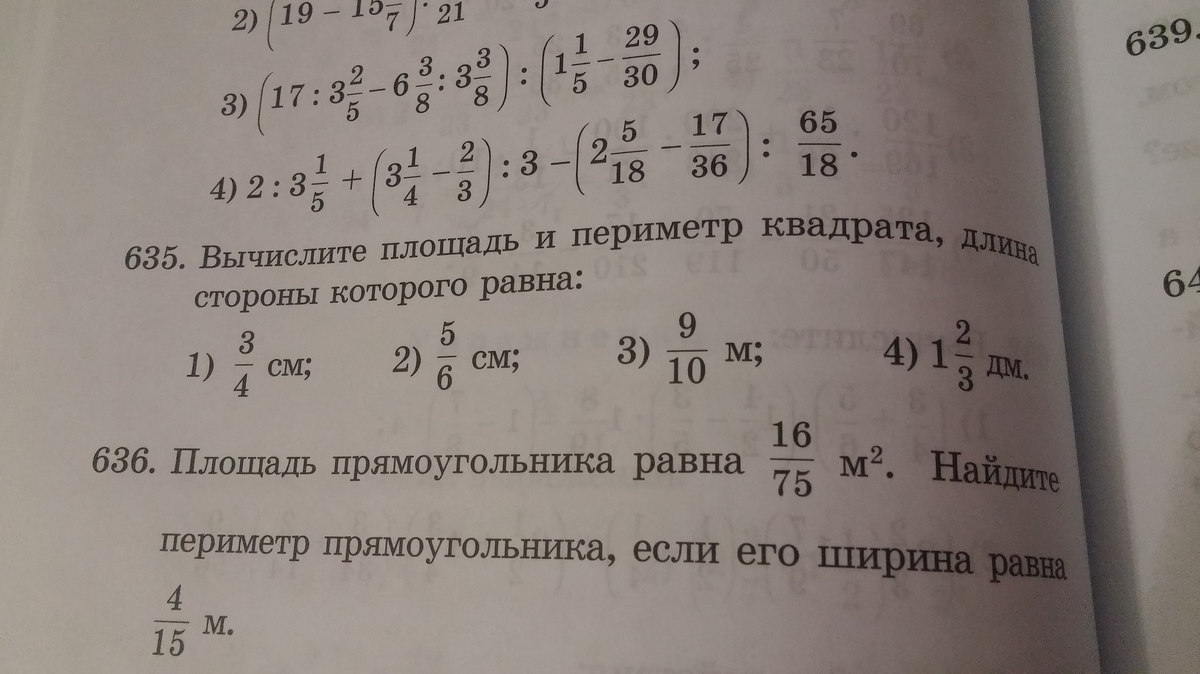 4) S=5/3·5/3=25/9=2 7/9 дм²