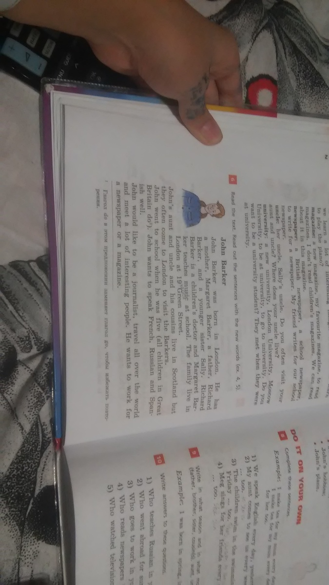 Джон пошел в школу, когда ему было 5 лет (все дети в Великобритании ходят). Джон хочет хорошо говорить по-французски, по-русски и по-испански.