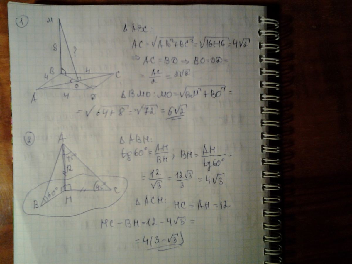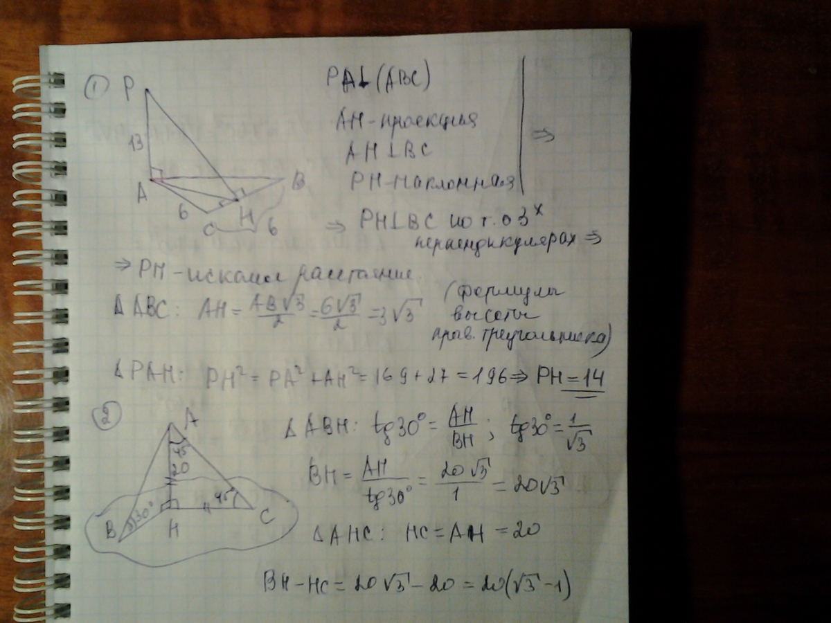 Применена теорема о трех перпендикулярах, определение тангенса, теорема Пифагора