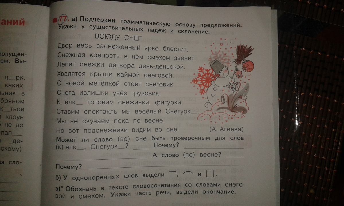 двор блестит,крепость звенит,детвора лепит,снеговик стоит, грузовик увёз,