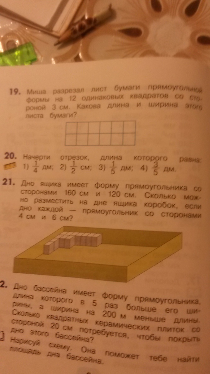 4) 3/5 дм = 30/5 см = 6 см -- отрезок длиной 12 клеточек