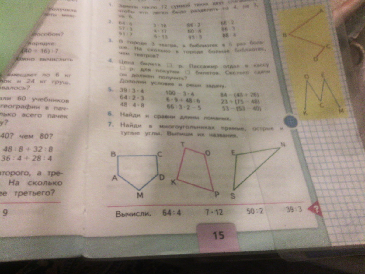 помоги! найди в многоугольниках прямые, острые и тупые углы . выпиши их названия