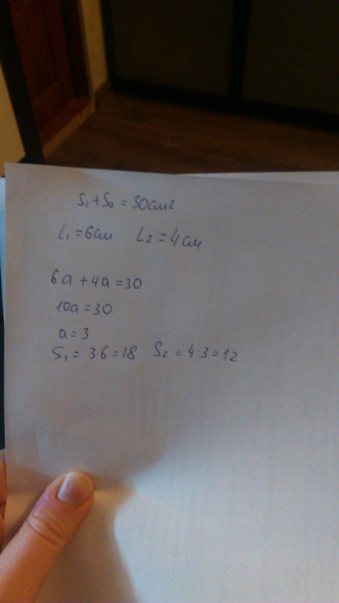 Ответ: площадь первого пр-ка 18 см2, площадь второго - 12 см2
