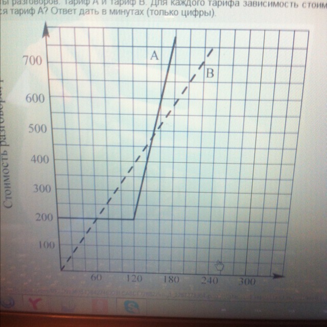 Компания предлагает на выбор два разных тарифа: а и б. Для каждого тарифа зависимости разговора от его продолжительности изображена на рис. На сколько минут хватит 600р, если тариф а? Ответ в минутах