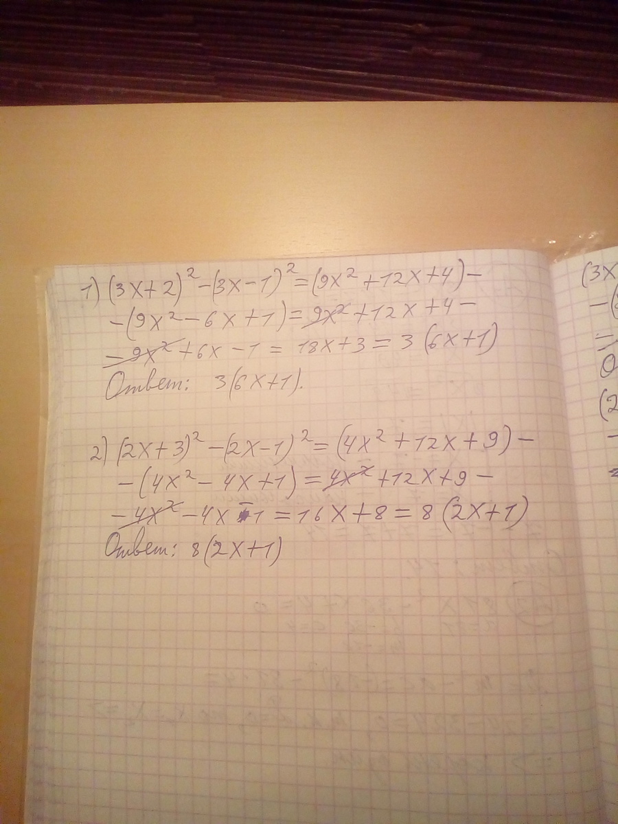 (3x+2)²-(3x-1)²=(3x+2-3x+1)(3x+2+3x-1)=3(6x+1)