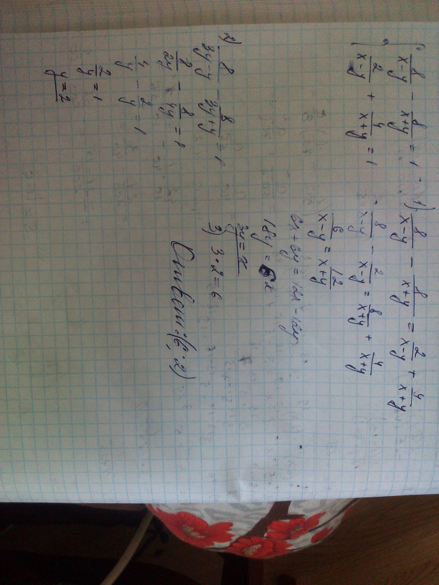 2) подставим вместо х в первое уравнение 3у. получим, что у=2
