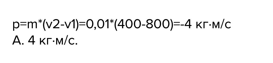 Пуля массой 10г пробивает стену, скорость пули при этом умеьшилась от 800 до 400мс,найдите изменения импульса пули