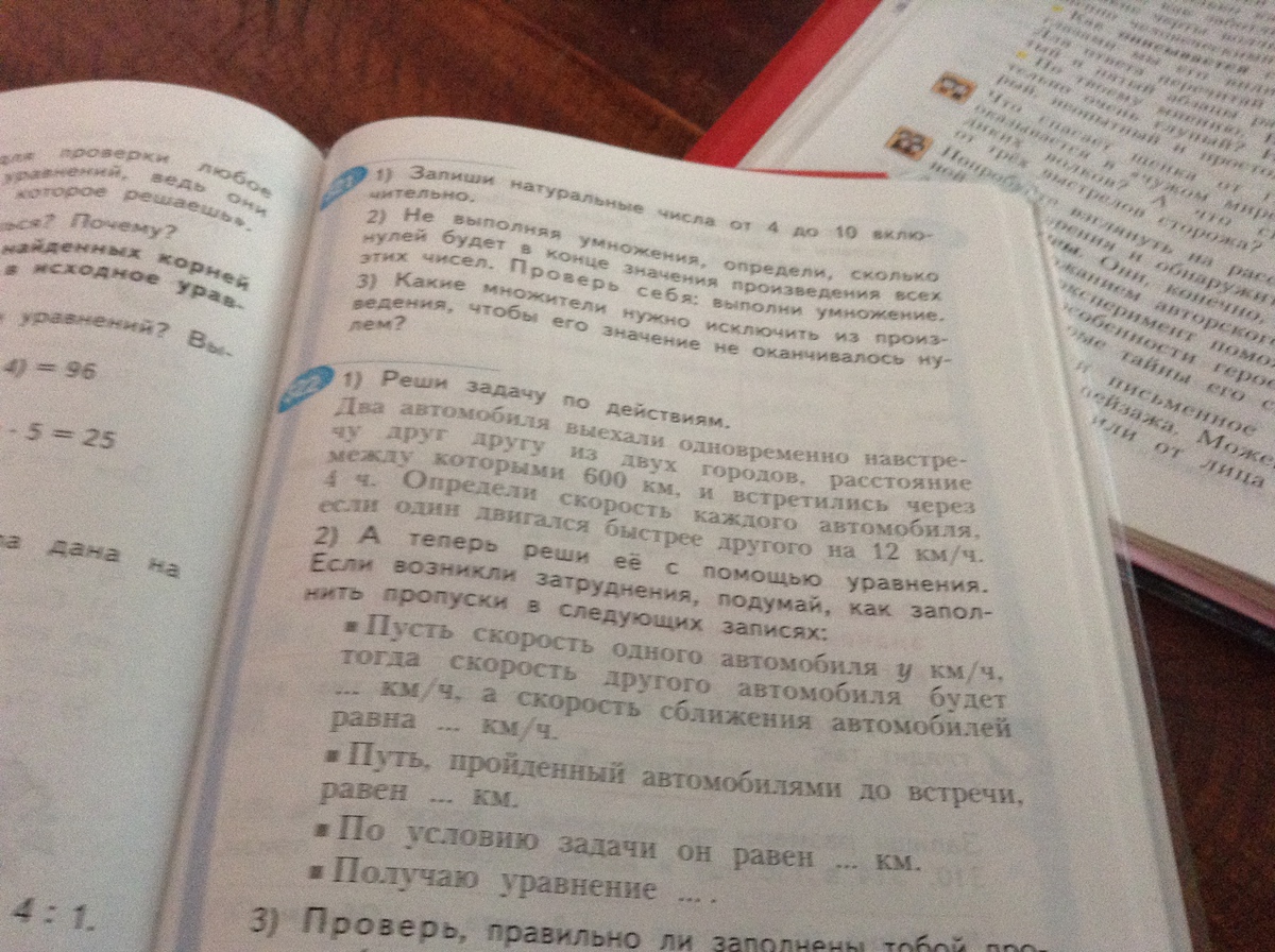 Если номер 322 то x км ч -скорость 1 (x+12)-км ч скорость 2 .Скорсть сближения (x+(x+12))км ч умножаем это на 4 (8x+48) это рвано 600 км 8x=552 x=69 69 км ч скорость первого 69+12=81 км ч скорость 2 го . Сделай проверку если хочешь