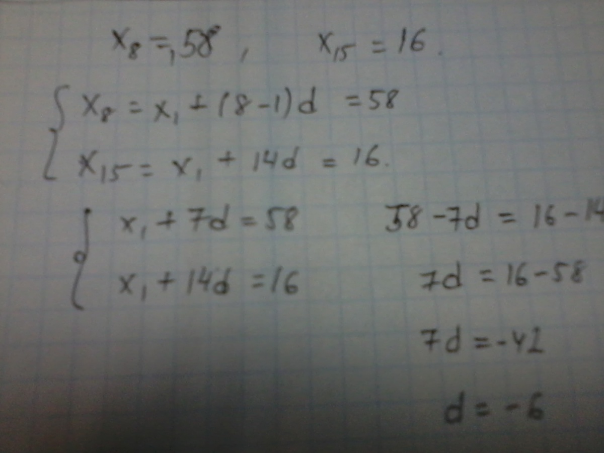 d=(Xn-Xm)/(n-m)=(X15-X8)/(15-8)=(16-58)/7=-42/7=-6
