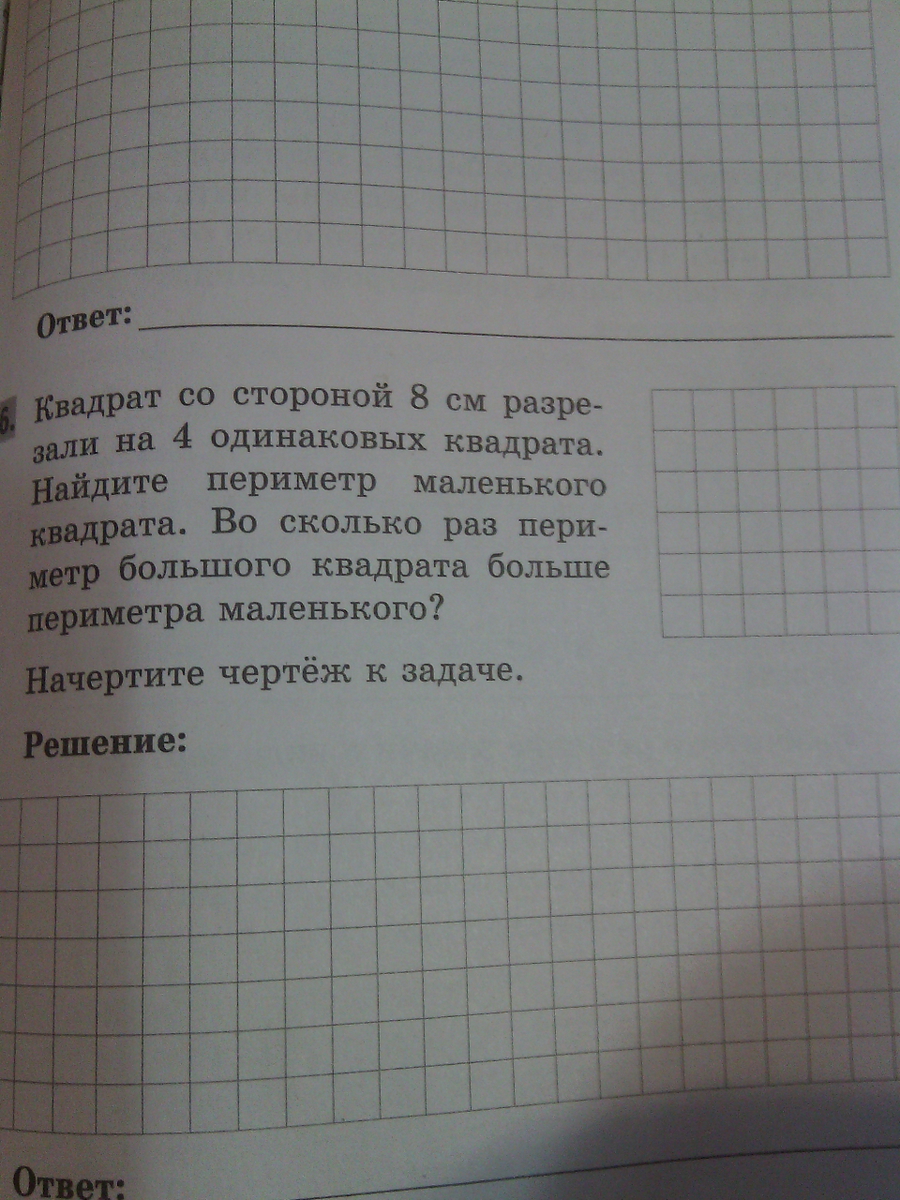 Ответ: большой квадрат больше маленького в 4 раза.