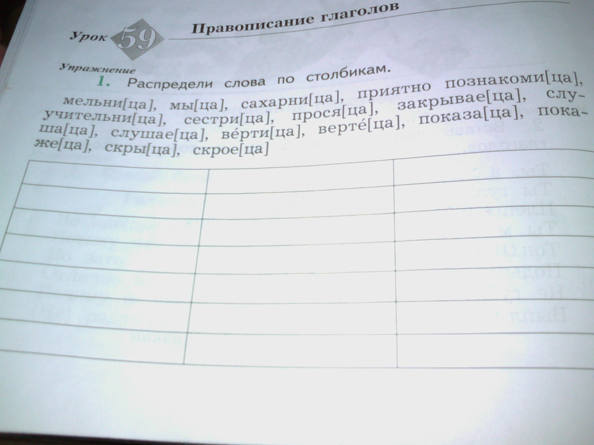 1.мельница,сахарница ,учительница, сестрица, 2.мытсься,познакомиться,слушаться, показаться,скрыться,3.просятся,закрывается, вертится, покажется,скроется. неуверена что правильно