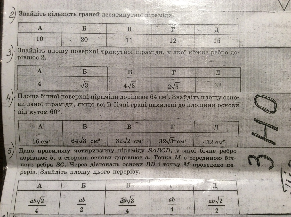 4) Sосн =Sбок*cosα =64 см² *1/2 =32 см² . →Д