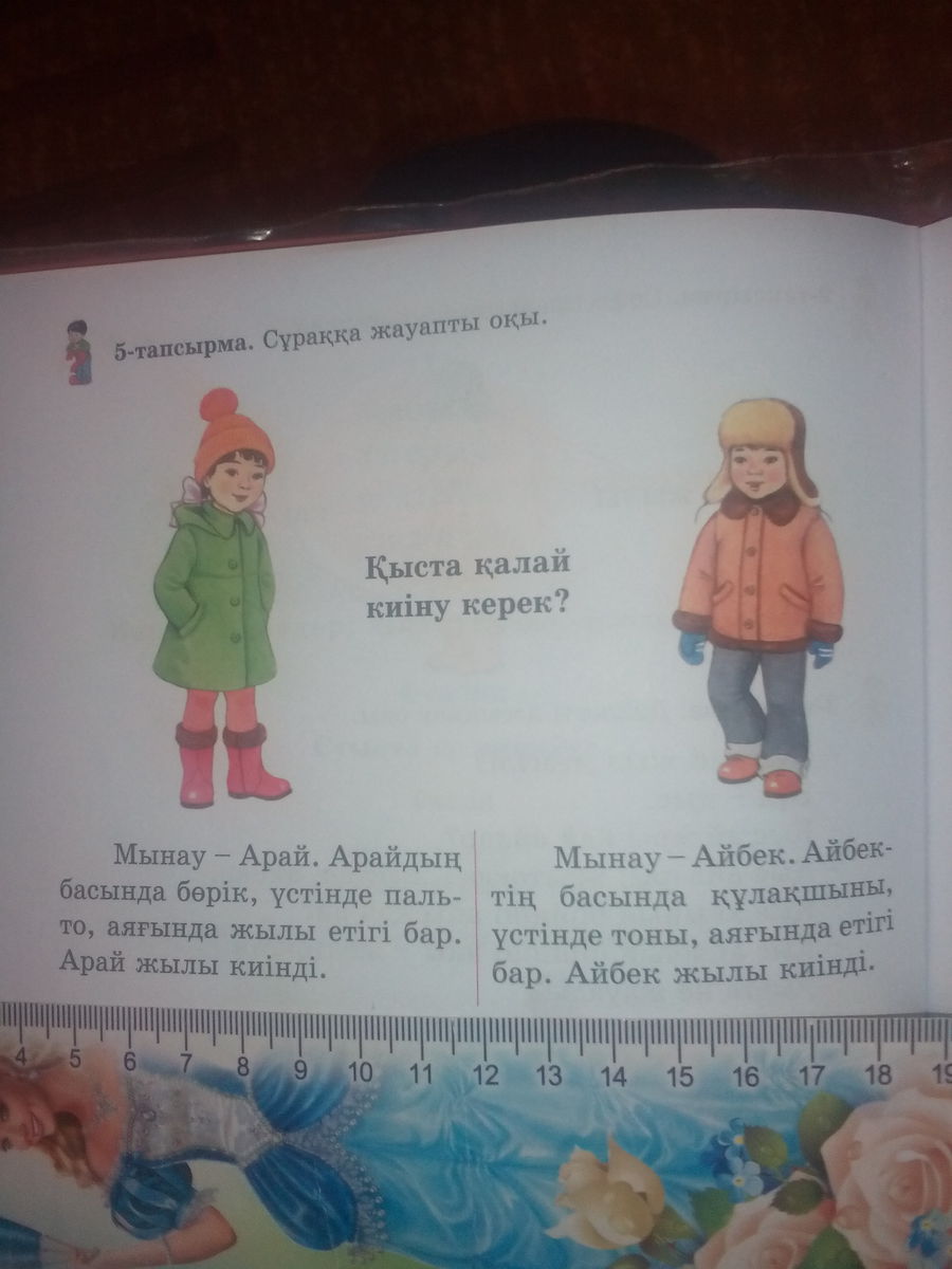 Это Арай. У Арай на голове шапка,одета в пальто,а на ногах сапоги. Арай тепло оделась.