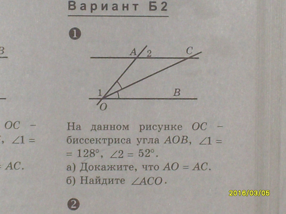 в треугольнике АСО АОС=АСО=26, значит, треугольник АСО-равнобедренный по признаку, откуда следует, что АО=АС