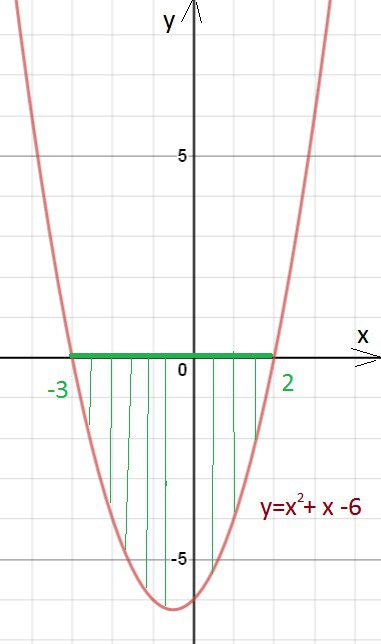 Графическое решение. Строим параболу у=х²+х-6, которая пересекает ось ох в точках х=-3 и х=2