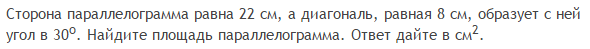 S=2*1/2*22*8sin30=22*5*1/2=88