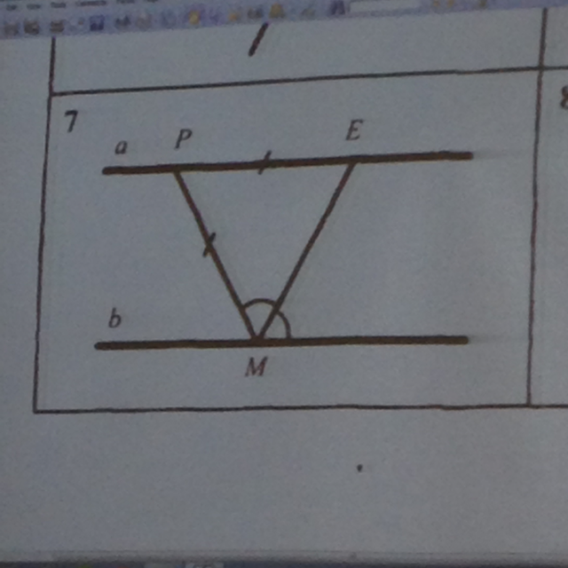 Улгы РЕМ и ЕМК(обознать на прямой б правее от точки М точку К) являются накрест лежащими.
