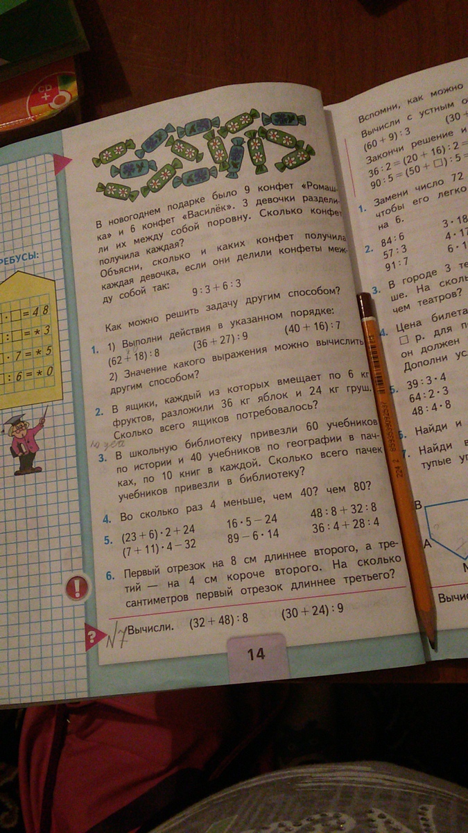 номер 7 - (32+48)÷8=10. (30+24)÷9=6