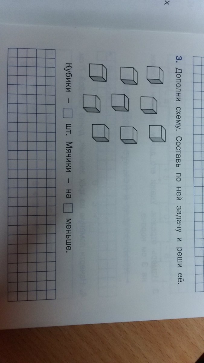 у Тани было 9 кубиков,а мячиков на 6 меньше. Сколько у Тани мячиков?