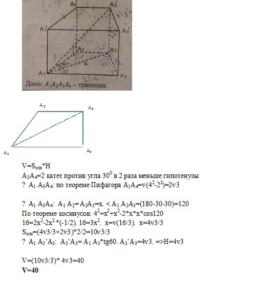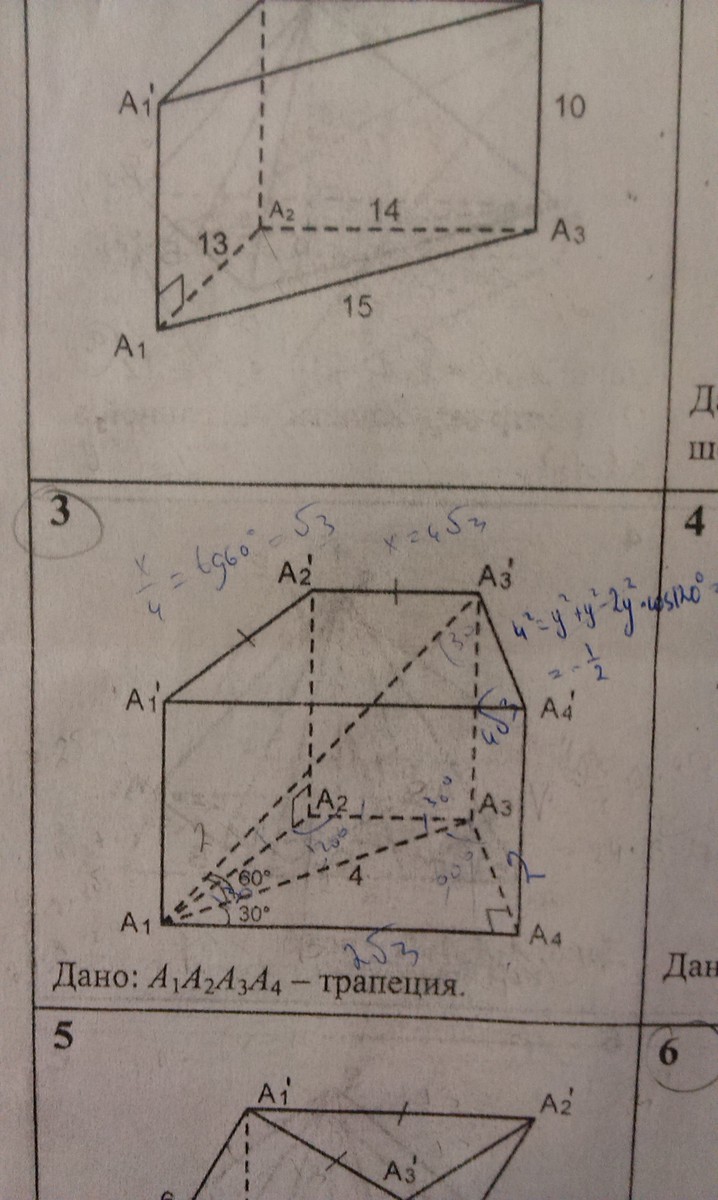 Подскажите 3 задачу. Найти объем призмы. (на записи ручкой не обращайте внимания=) )