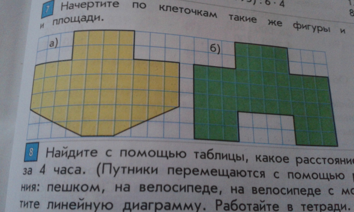 Начертите по клеточкам такие же фигуры и найдите их периметры