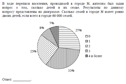 По диаграмме плохо видно, но 0 детей как раз будет у 60000/100*27=16200 семей. То есть в 16200 семьях нет детей.