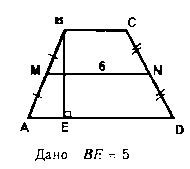 (a+b)/2 формула длины средней линии трапеции, по условию MN=6 - средняя линия трапеции. BE= h=5 ⇒