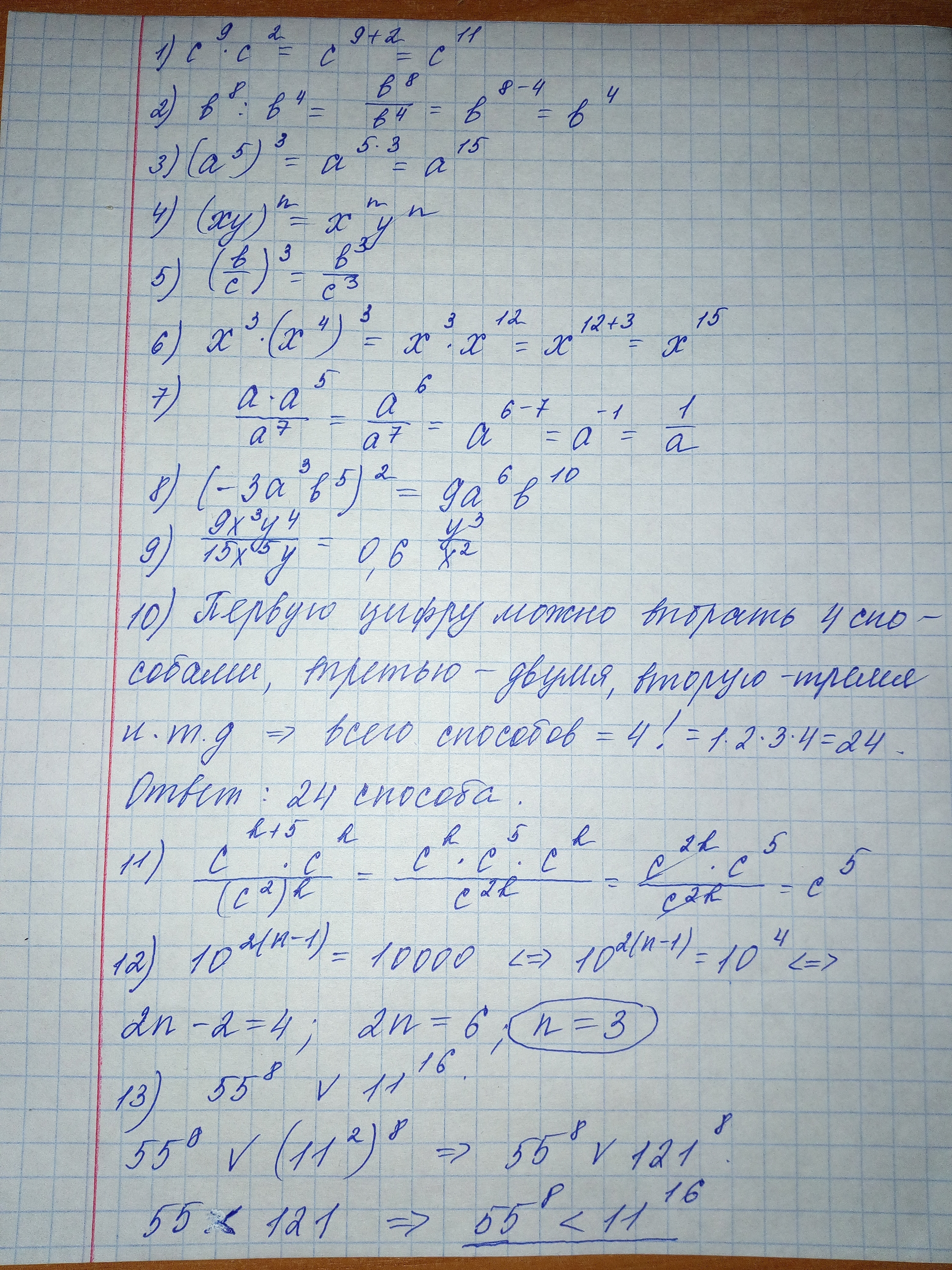 Выполните действия, воспользовавшись соответствующим свойством степени (1-5)